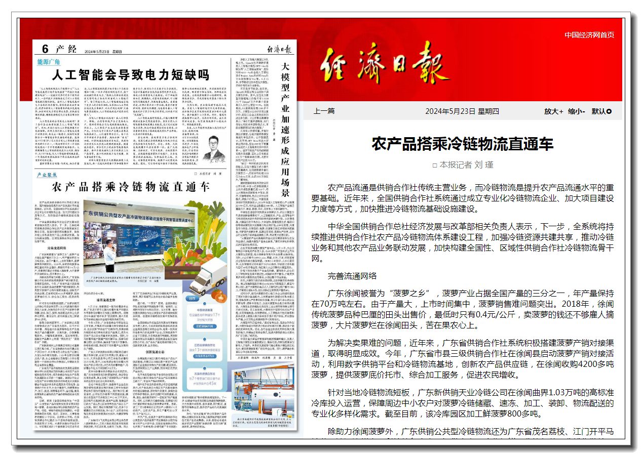 除助力徐闻菠萝外,广东供销公共型冷链物流还为广东省茂名荔枝、江门开平马铃薯、清远连州水晶梨等特色农产品提供农产品冷藏保鲜、分拣包装、分拨集散等服务,大幅降低腐损率,延长销售期,缓解农产品集中上市期“果贱伤农”“菜贱伤农”问题。
