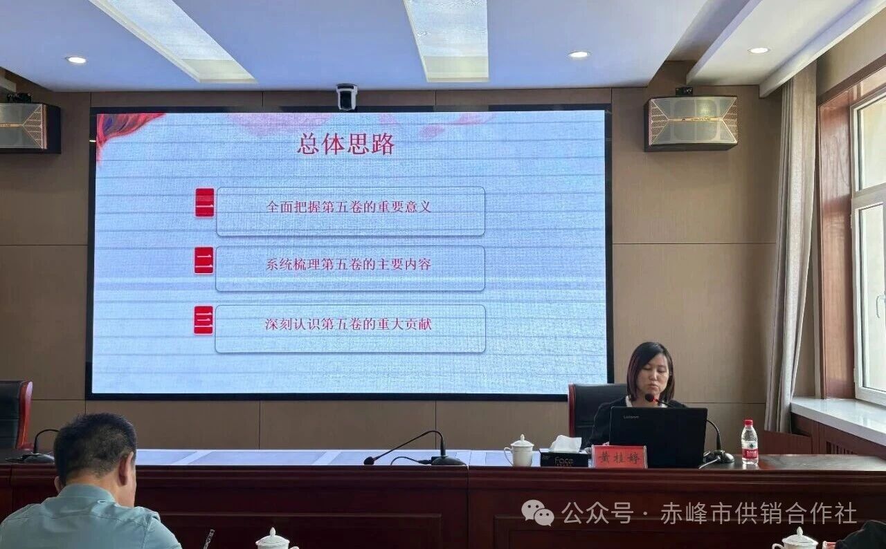 市委党校党史党建教研室黄桂婷老师围绕《习近平谈治国理政》第五卷,深入解读习近平新时代中国特色社会主义思想的重大意义、科学体系和重大贡献,紧密结合供销合作社工作,通过案例分析,为干部职工精准解读习近平新时代中国特色社会主义思想的核心要义与实践要求,推动党的创新理论入脑入心、落地见效。读书班期间,全体干部职工严格遵守学习纪律,以饱满的学习热情投入集中研学,通过研读原文、交流研讨等形式,深入领会全会丰富内涵和实践路径,切实做到学有所思、学有所悟、学有所获。市供销合作社将以此次读书班为契机,认真学习贯彻党的二十届四中全会精神,努力把学习成果与“建组织、办企业、强服务”等重点工作紧密结合,找准切入点和着力点,将学习成效转化为推动工作落实的具体举措,为助力乡村全面振兴贡献供销力量。